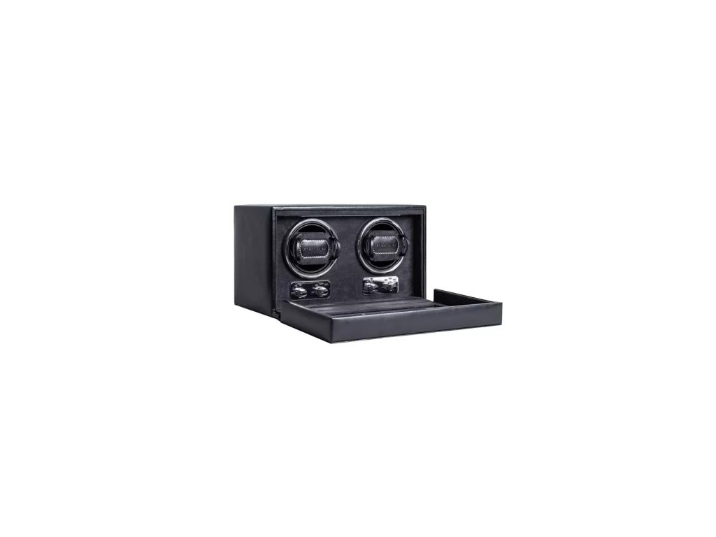 Natahovač Bond pro 2 mechanické hodinky s automatickým nátahem představuje stylové a funkční řešení pro bezpečné uložení a optimální chod vašich hodinek. Povrch z černé syntetické kůže v kombinaci se šedým interiérem působí moderně a nadčasově.
