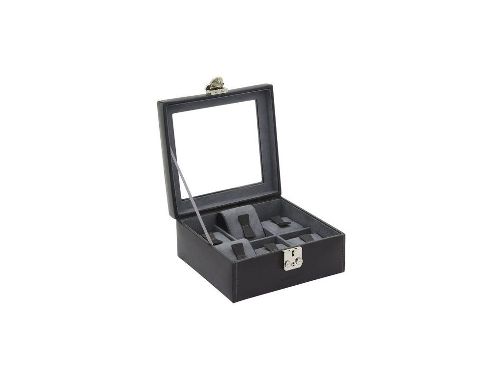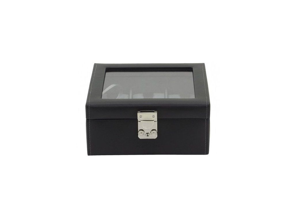Kožená kazeta na 6ks hodinek, černá barva s antracitovým interiérem, prosklené víko.