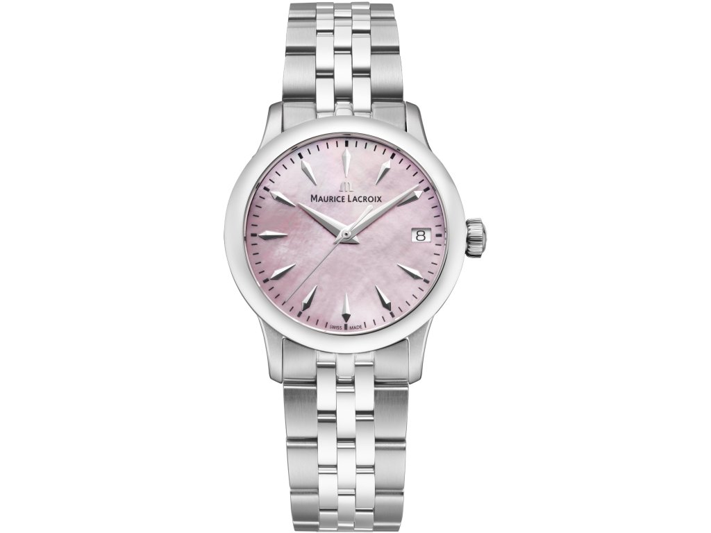 Maurice Lacroix 1975 Quartz 751006-SS002-560-1 jsou dámské bateriové hodinky v klasickém stylu na ocelovém náramku v kombinaci brusu a lesku s motýlkovou sponou. Pouzdro z nerezové oceli má průměr 33 milimetrů. Růžový perleťový číselník s ukazatelem data na třetí hodině je chráněn odolným safírovým sklem s antireflexní vrstvou a jeho krása vyniká zejména na přímém světle, kdy můžeme pozorovat hru barev perleti. Pohon hodinek zajišťuje švýcarský quartzový strojek Ronda 515 s přesností -10/+20 sekund za měsíc. S vodotěsností 10 ATM jsou hodinky vhodné pro plavání a šnorchlování.
