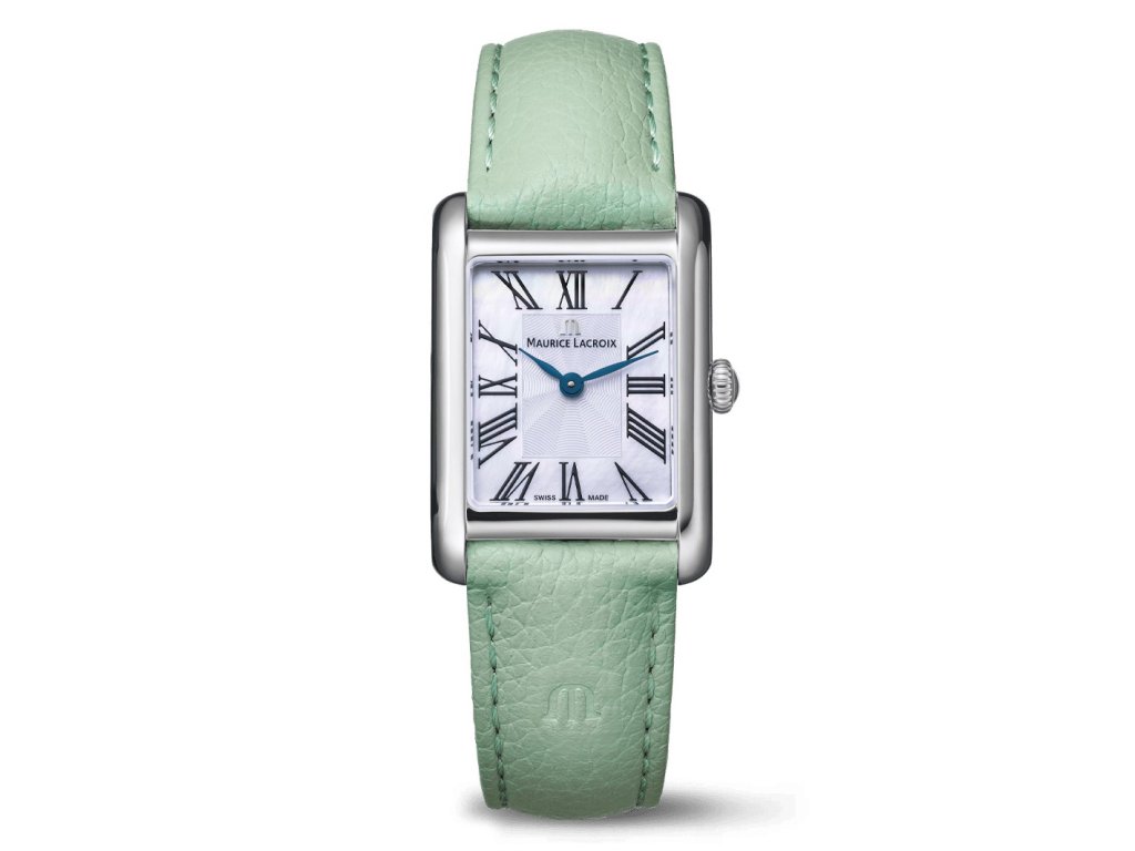 FIABA Maurice Lacroix oslavuje jemnost, ženskost a moderní eleganci. Tyto dámské hodinky s vytříbeným designem a smyslem pro detail nabízejí dostupný luxus, který potěší každou stylovou ženu – ať už při každodenním nošení, nebo jako doplněk pro speciální příležitosti. Model má obdélníkové pouzdro z nerezové oceli, které působí čistě, nadčasově a podtrhuje univerzální eleganci hodinek. Stříbrný číselník s římskými číslicemi vytváří harmonický a klasický vzhled, zatímco modře tónované ručky dodávají jemný barevný kontrast a nádech sofistikovanosti. Charakter hodinek doplňuje kožený řemínek v zelené barvě, který přináší svěží a neotřelý akcent, aniž by narušil elegantní linie celkového designu. Uvnitř pracuje spolehlivý quartzový strojek, který zajišťuje přesný a bezúdržbový chod.