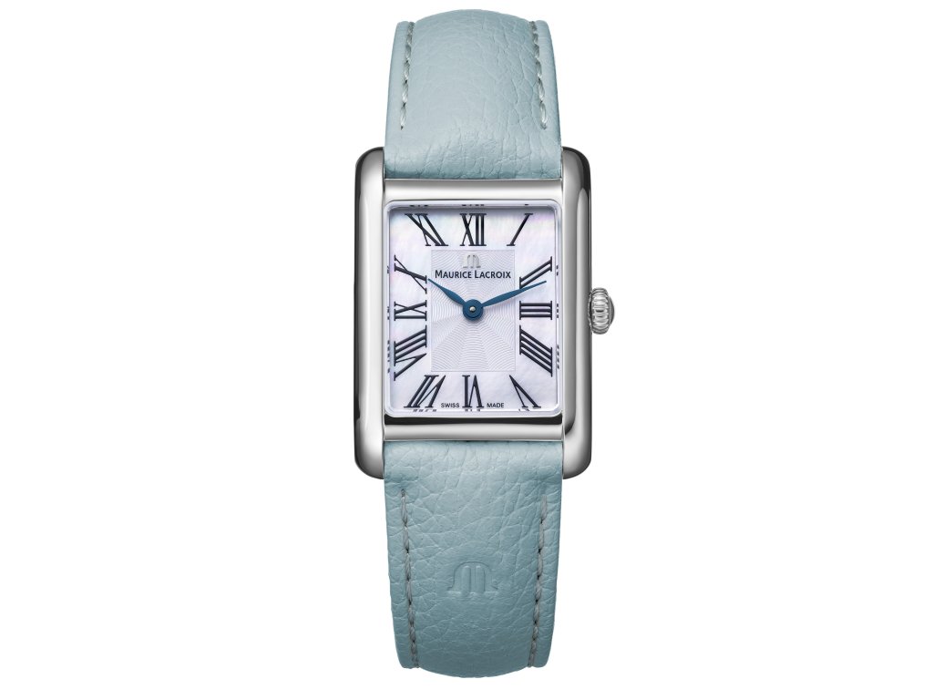 Maurice Lacroix Fiaba Square FA1205-SS001-160-4 jsou dámské bateriové elegantní hodinky na světle modrém koženém řemínku s trnovou sponou. Hranaté pouzdro je z nerezové oceli. Číselník je z perleti se stříbrným středem a římskými číslicemi. Krása modelu vyniká zejména na přímém světle, kdy se rozeznívá barvohra perleti. S vodotěsností 5 ATM jsou hodinky odolné proti dešti a při sprchování. Tyto dámské hodinky s precizně zpracovaným designem a důrazem na detail představují dostupný luxus, který se skvěle hodí jak pro každodenní nošení, tak jako vkusný doplněk na večerní příležitosti.