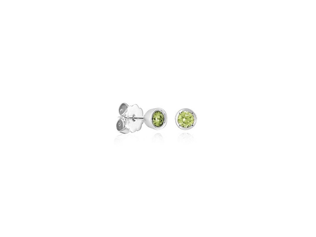Pecičkové náušnice z bílého 14karátového zlata zdobí přírodní peridoty s osvěžujícím zeleným odstínem. Elegantní šperk pro každý den.
