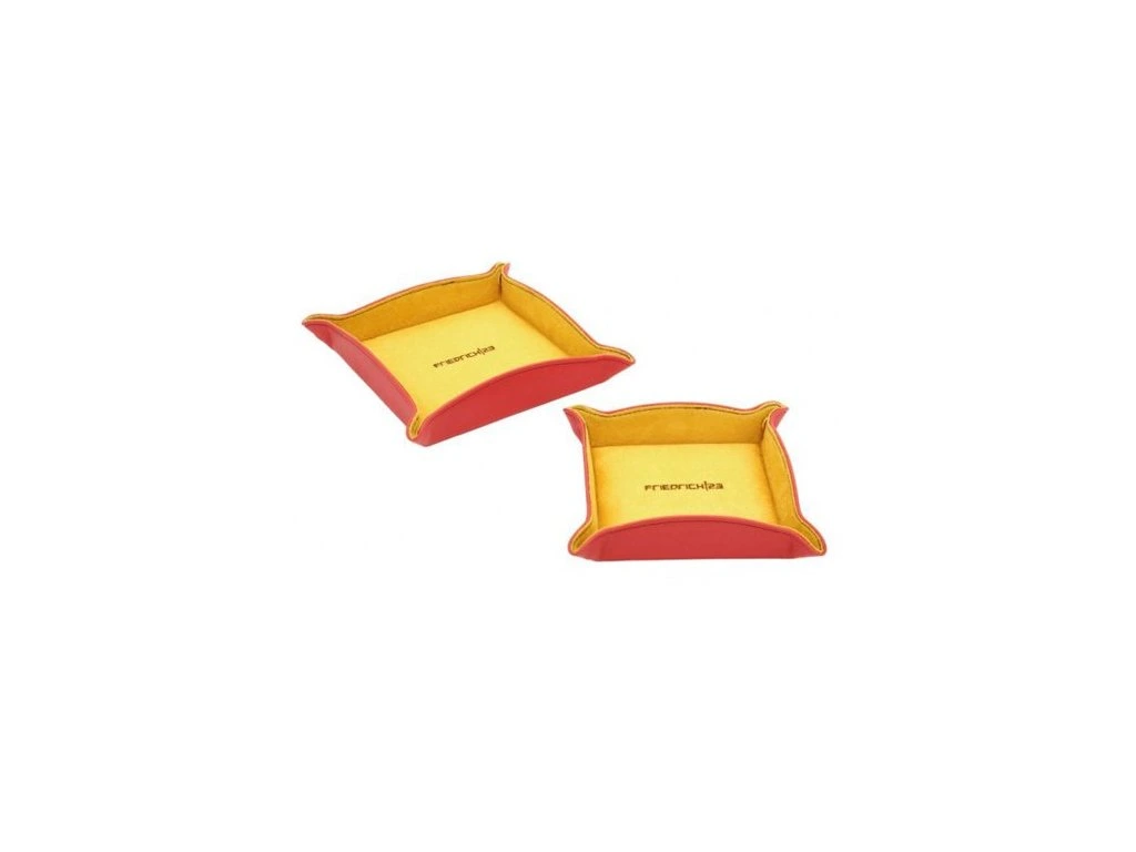 Sada 2 odkládacích platíček v korálově růžové barvě se žlutým interiérem, platíčka mohou být i rozložena díky rozepnutým rohovým cvočkům.