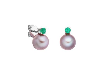Zlaté náušnice s přírodními fialovými perlami a smaragdy