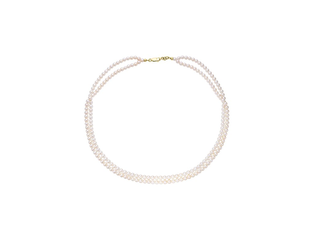 Dvouřadý náhrdelník z drobných, pravidelně navlečených bílých sladkovodních perel působí jemně a elegantně. Lesk přírodních perel vyniká díky jejich pečlivému výběru a uspořádání do dvou souběžných řad.