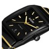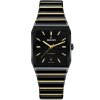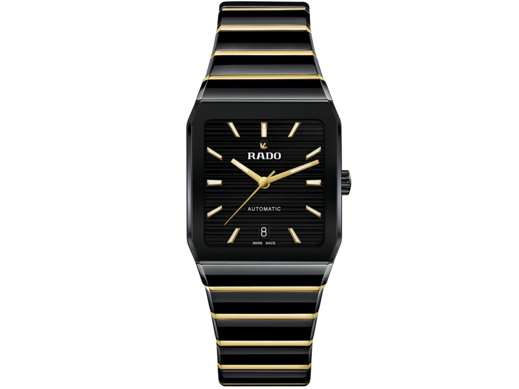 Rado Anatom Automatic R10200152 jsou luxusní unisex hodinky v elegantním stylu na bicolor náramku z keramiky a oceli s PVD úpravou ve zlaté barvě a s motýlkovou sponou. Černé keramické pouzdro o šířce 32,5 milimetru je vyrobeno z odolného materiálu Plasma High-Tech Ceramic, díky kterému jsou hodinky lehké, hypoalergenní a odolné vůči poškrábání. Průhledné zadní dýnko z nerezové oceli a sklíčka umožňuje sledovat chod strojku. Černý číselník s drážkami a ukazatelem data na pozici 6. hodiny je chráněn cylindrickým safírovým sklem s antireflexní vrstvou na vnitřní straně. Ručičky a indexy jsou pokryty luminiscenčním nátěrem Super-LumiNova®, který garantuje perfektní čitelnost za zhoršených světelných podmínek. Pohon hodinek zajišťuje mechanický strojek R766 (03.766.732) s automatickým nátahem a rezervou chodu 72 hodin. Tento strojek s funkcí zastavení vteřinové ručky při vytažení korunky do krajní polohy, pro kterou se vžilo označení hacking, je možné v případě potřeby natahovat i ručně. Díky použití antimagnetického vlásku setrvačky Nivachron™ je tento kalibr vysoce odolný vůči vlivům magnetického pole. Vodotěsnost hodinek činí 5 ATM a jsou tedy odolné proti dešti a při sprchování.