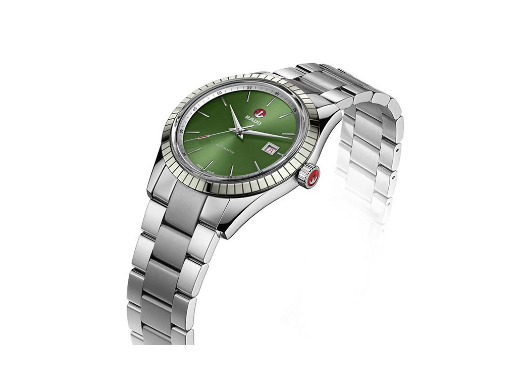 Rado HyperChrome Classic Automatic R33101314 jsou pánské klasické hodinky na ocelovém náramku. Pouzdro z leštěné nerezové oceli má průměr 42 milimetrů a je vybaveno lunetou z materiálu Plasma High-Tech Ceramic, který je vysoce odolný vůči poškrábání. Zelený číselník s efektem slunečního brusu a datumovkou na třetí hodině je chráněn safírovým sklem s oboustrannou antireflexní vrstvou. Vteřinová ručička je vybavenou vrstvou Super-LumiNova® pro lepší viditelnost za zhoršených světelných podmínek. Průhledné dýnko umožňuje pohled na mechanický strojek R763 (03.763.143) s automatickým nátahem dekorovaný ženevskými pruhy, který disponuje rezervou chodu 80 hodin. Tento strojek s funkcí hackingu (zastavení vteřinové ručky při vytažení korunky do krajní polohy) je možné v případě potřeby natahovat i ručně. Díky použití antimagnetického vlásku setrvačky Nivachron™ z titanové slitiny je kalibr vysoce odolný vůči vlivům magnetického pole. Pro dosažení co nejvyšší možné přesnosti je stroj testován v pěti pozicích. S vodotěsností 5 ATM jsou hodinky odolné proti dešti a při sprchování. Systém EasyClip umožňuje rychlou a snadnou výměnu řemínků.