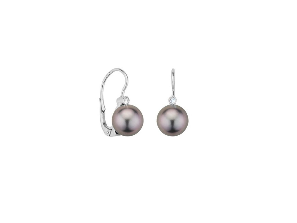 Náušnice z bílého 14karátového zlata s tahitskými přírodními perlami a přírodními diamanty představují dokonalou kombinaci nadčasové elegance a jemné ženskosti. Mořské perly s hedvábným kovovým leskem září v kontrastu s tónem bílého zlata a vytvářejí harmonii, která nikdy nevyjde z módy. Přírodní diamanty dodávají náušnicím jemný třpyt.