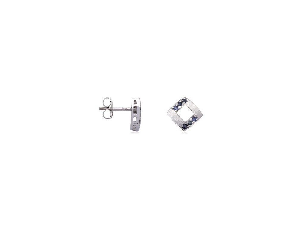 Zlaté náušnice s přírodními safíry. Kombinace 14karátového bílého zlata a přírodních modrých safírů přináší harmonii noblesy a decentního šarmu. Ideální pro ženy, které vyhledávají jemný šperk s barevným akcentem a přirozenou elegancí.