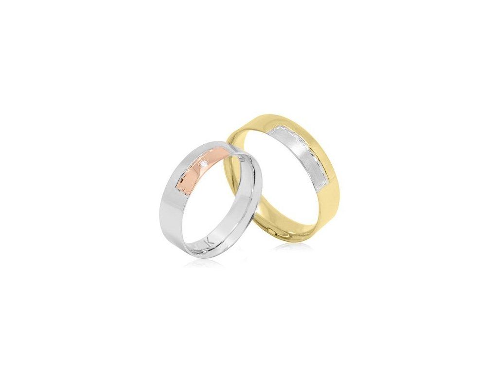 Snubní prsteny z bílého, žlutého a růžového 14karátového zlata.