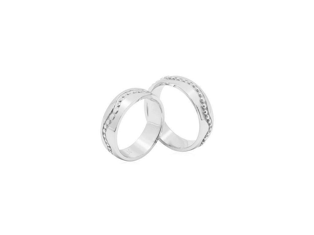 Zlaté snubní prsteny z bílého 14karátového zlata s jemným dekorativním zdobením.