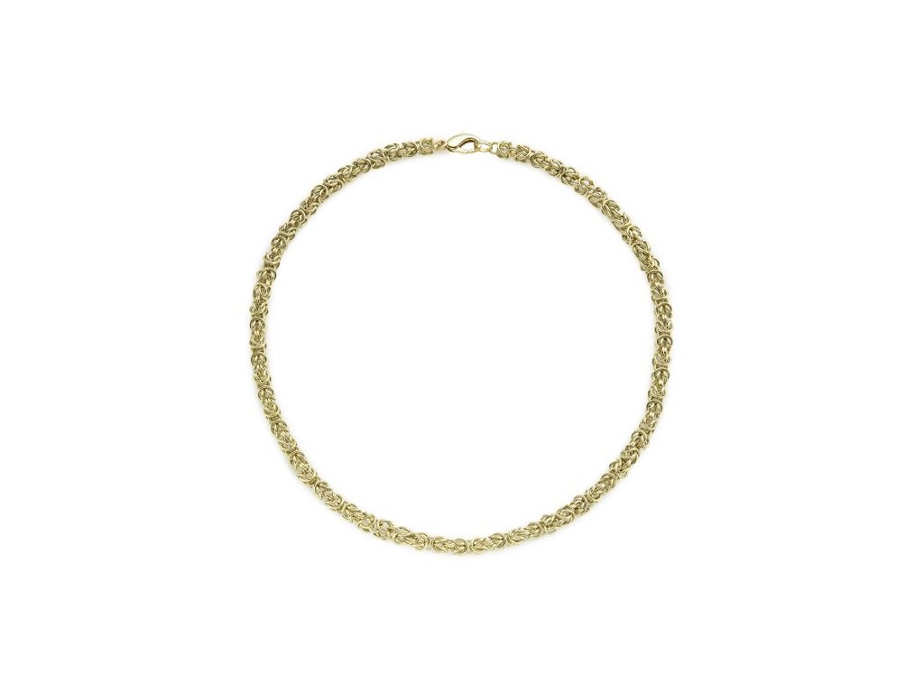 Objevte dokonalé spojení elegance, síly a tradičního řemesla v tomto výjimečném náhrdelníku vyrobeném z 14karátového žlutého zlata. Precizní ruční výroba vytváří jedinečnou strukturu připomínající královské vazby – každý článek je pečlivě zpracován a propojen do vzoru, který zaujme svou hloubkou i rytmem.