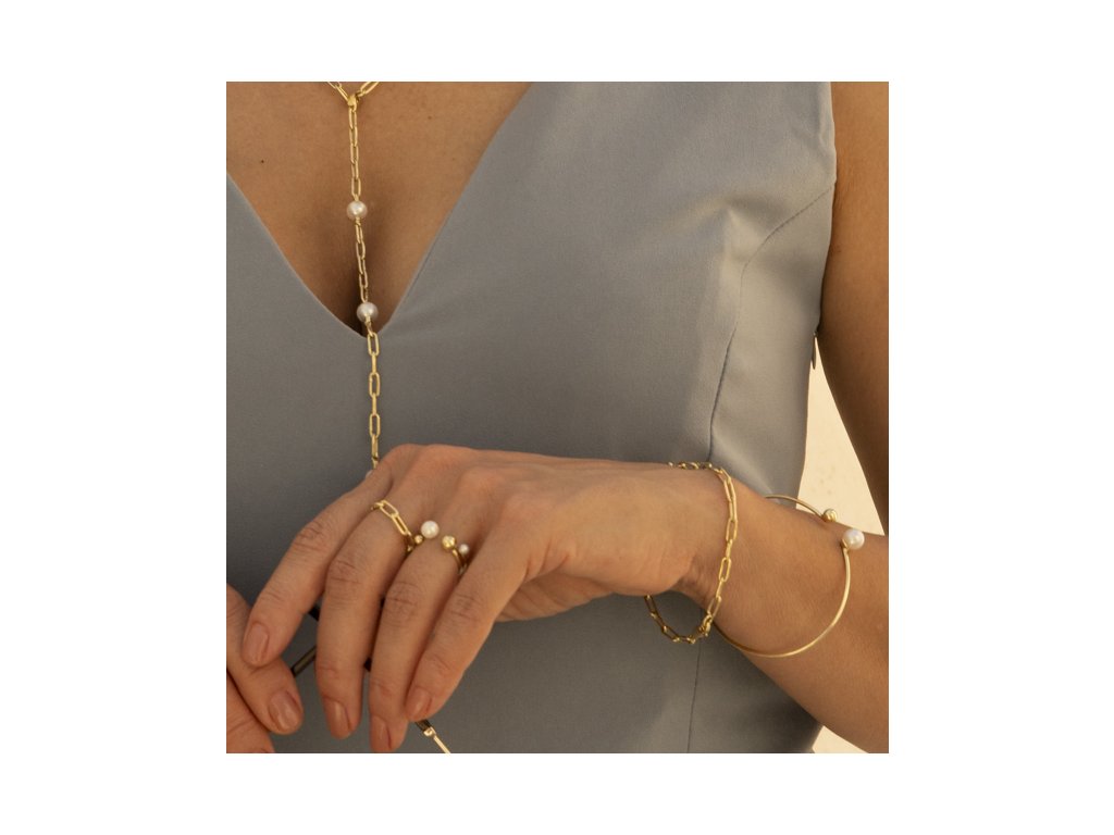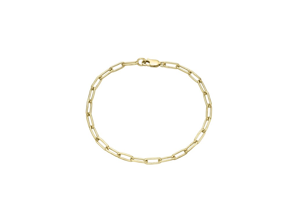 Elegantní náramek ze žlutého 14karátového zlata je tvořen z prodloužených oček, která dodávají šperku moderní charakter. Náramek je jemný a pohodlný na nošení.