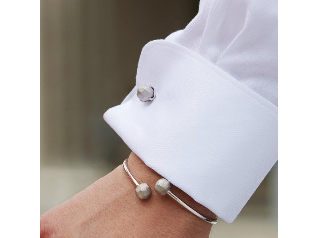 Díky otevřenému provedení se šperk pohodlně nosí a přizpůsobí se tvaru zápěstí.