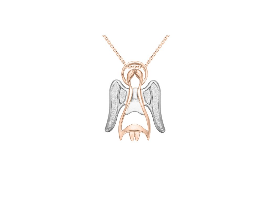 Přívěsek anděla je vytvořen z bílého a růžového 14karátového zlata, jejich spojení vyzařuje eleganci i jemné teplo. Křídla z bílého zlata mají speciální matování, které vytváří třpytivý efekt. Anděl je krásným pro každou dobu i příležitost. Nese v sobě symboliku ochrany a je osobním dárkem z lásky i pro radost.