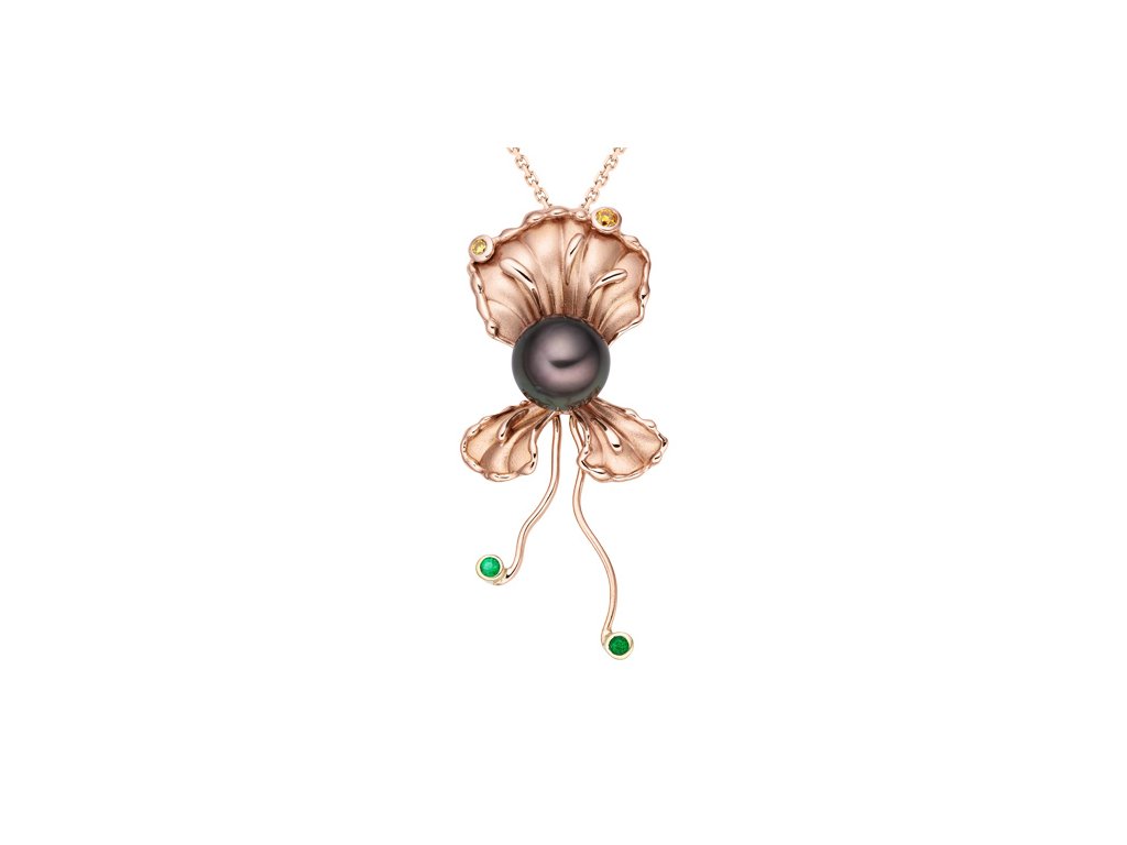 Zlatý přívěsek s přírodní perlou, diamanty a smaragdy
