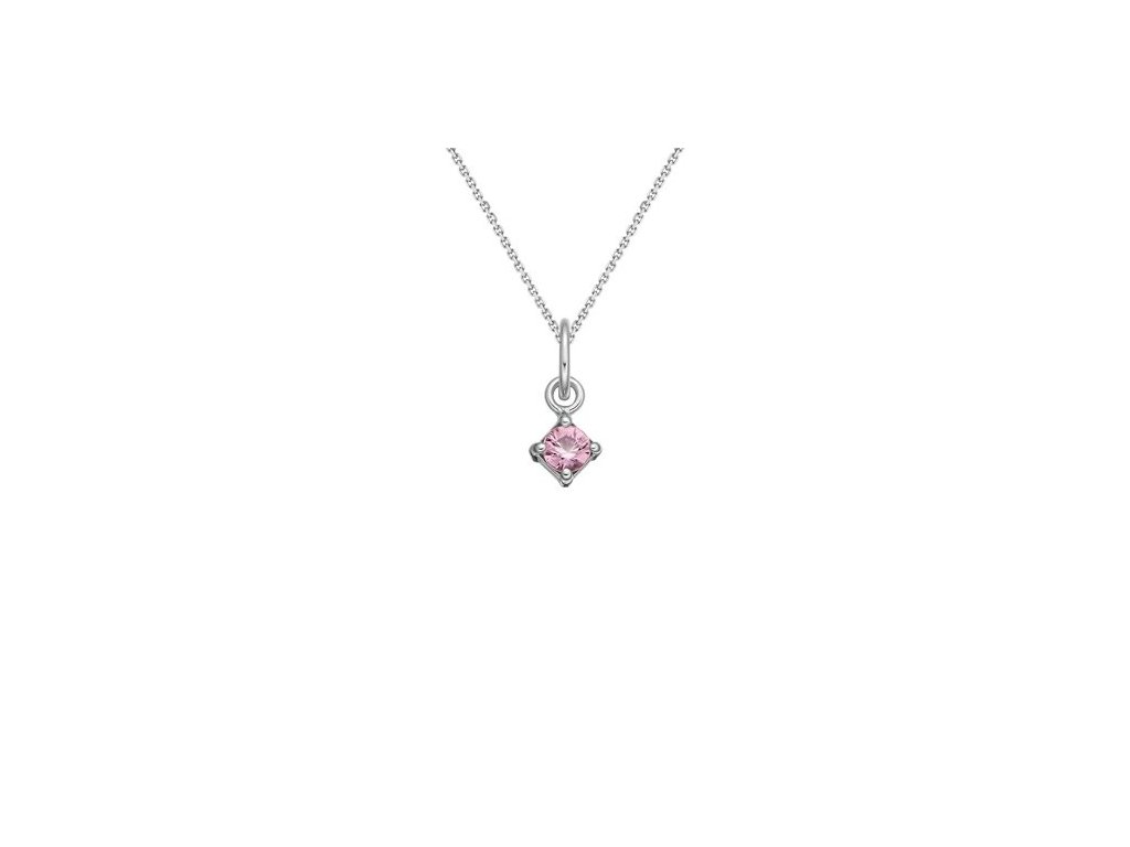 Přívěsek z bílého 14karátového zlata s růžovým safírem. Jemný růžový odstín přírodního safíru dodává šperku něžný třpyt a podtrhuje jeho elegantní zpracování. Díky svému decentnímu provedení je přívěsek krásným prvním šperkem pro děti.