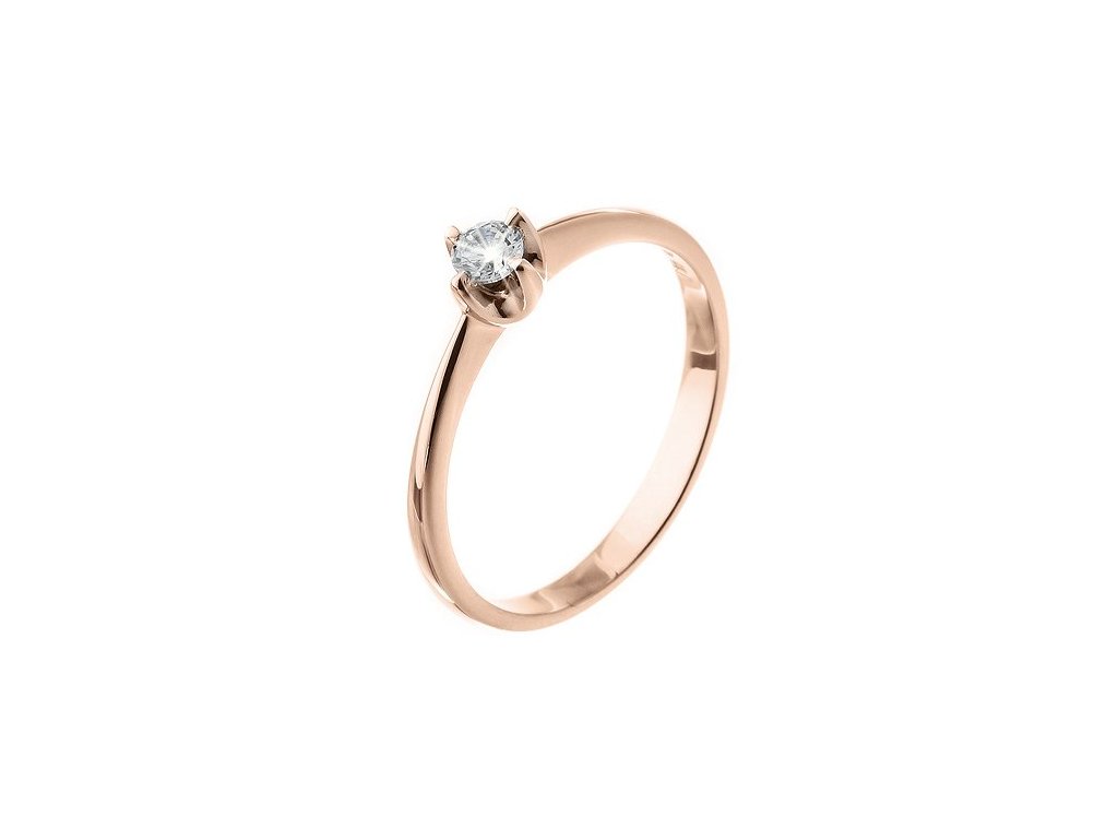 Prsten z růžového 14karátového zlata s přírodním diamantem. Klasická elegance, která nikdy neztratí své kouzlo.