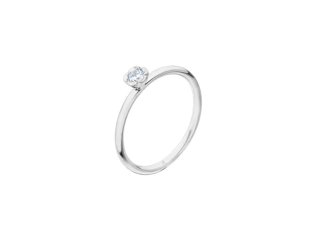Minimalistický prsten z bílého 14karátového zlata s jemným motivem kytičky a přírodním diamantem je něžným symbolem ženskosti a přirozené krásy.