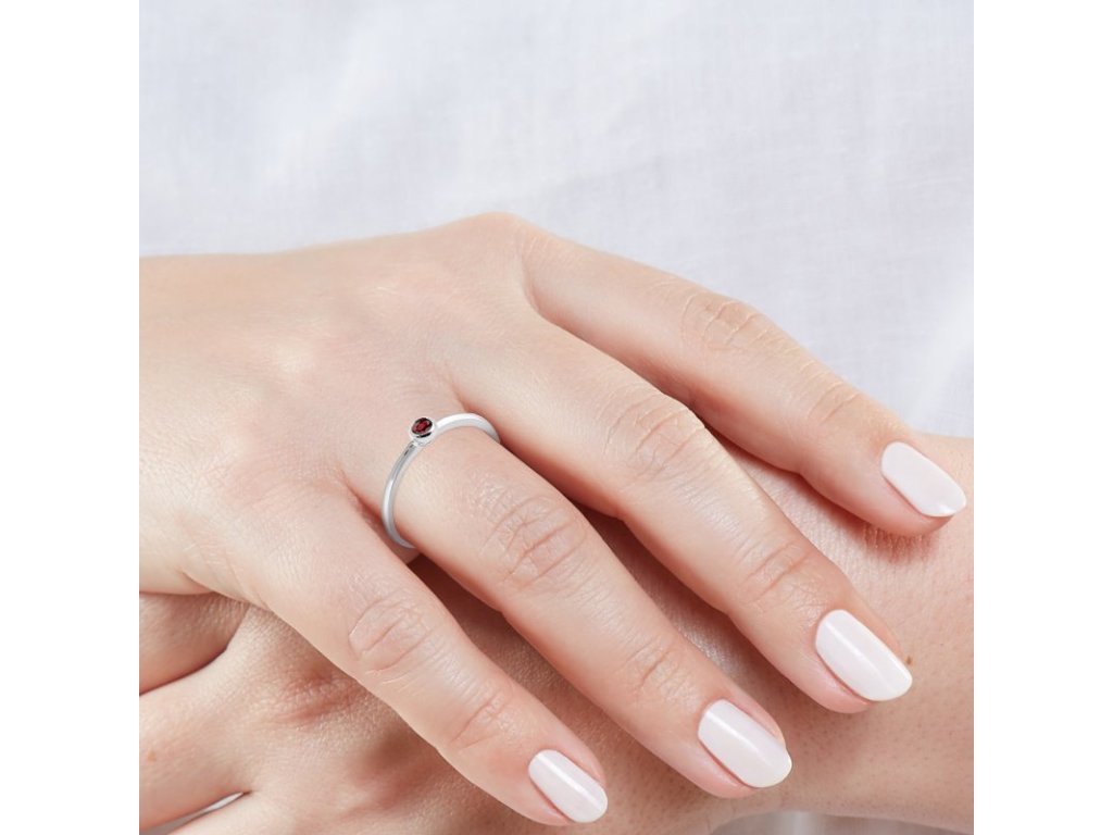 Jemný prsten z bílého 14karátového zlata zaujme svou čistou a elegantní linií. Uprostřed září přírodní rubín a každý pohyb odhaluje jeho nádhernou barvu.