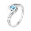 Nebesky modrý přírodní topaz swiss a přírodními diamanty tvoří svěží a jemnou kombinaci, kterou ocení milovnice lehkosti a elegance. Prsten z bílého 14kt zlata se skvěle hodí jako zásnubní, ale i jako šperk k výročí nebo jiné výjimečné příležitosti.
